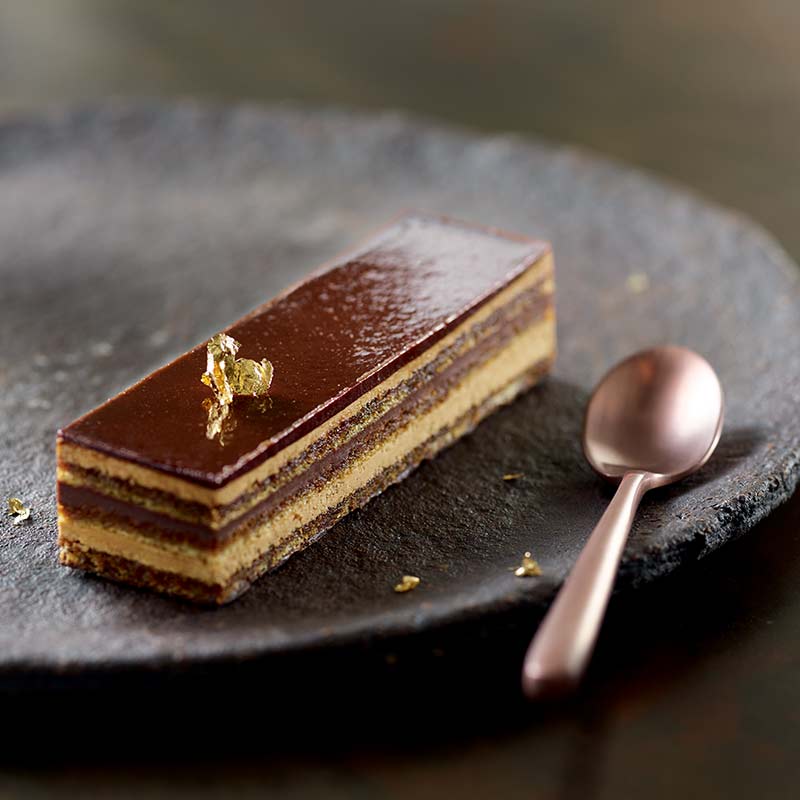 Gourmand et sophistiqué, l’Opéra de Traiteur de Paris se compose d’une succession de biscuits Joconde nature, d’une délicate ganache au chocolat et d’une crème au beurre légère parfumée au café, le tout recouvert d’un glaçage au chocolat qui apporte la note finale.