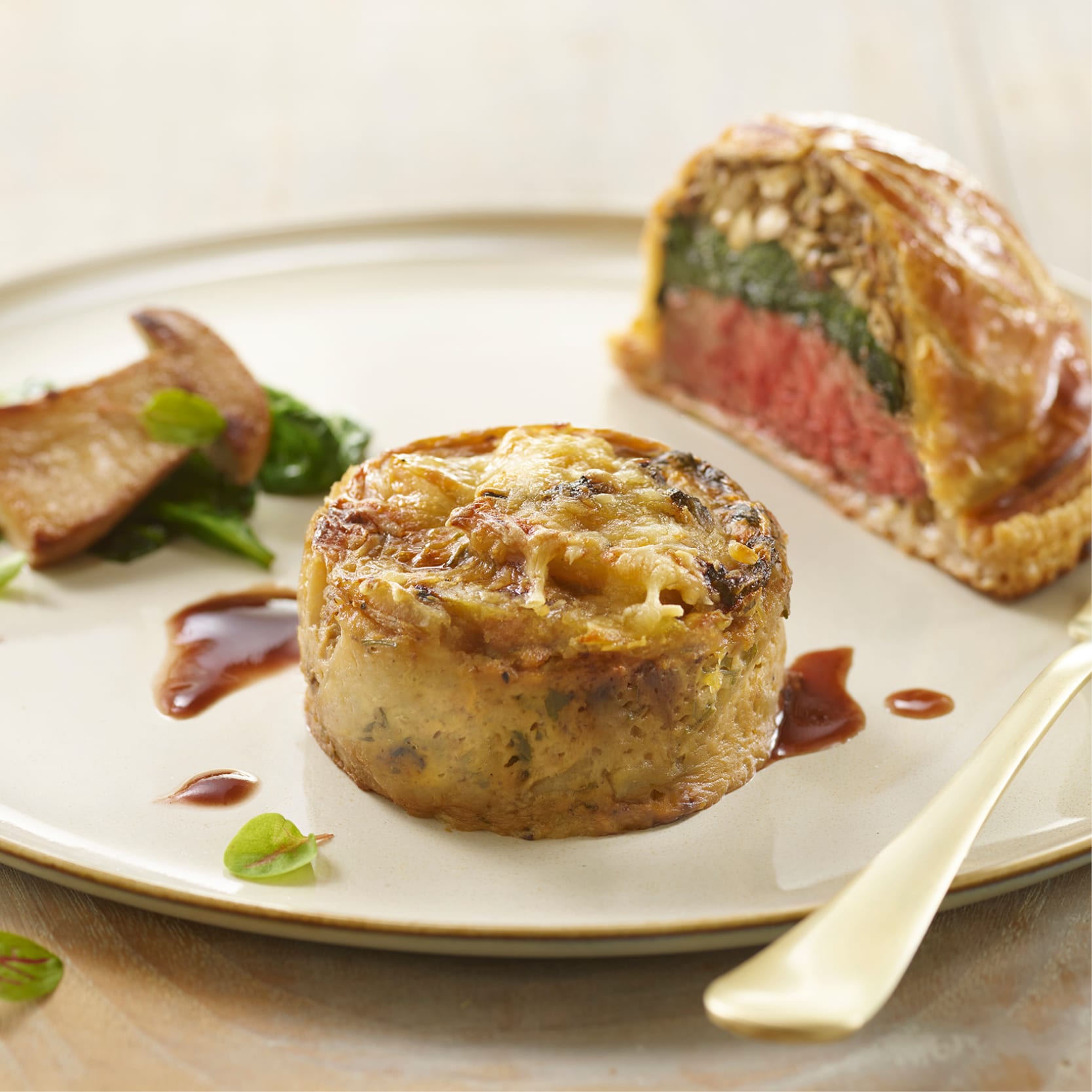 Le Gratin de Pommes de Terre aux Cèpes est une garniture facile et rapide à remettre en œuvre, dont la recette est parfaitement adaptée à la saison hivernale. Son format individuel permet de limiter les pertes et de maîtriser vos coûts portions.
