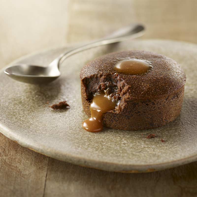 Le Moelleux Chocolat Cœur Caramel au beurre salé est une déclinaison du moelleux chocolat traditionnel. Grâce à sa cuisson minute, ce dessert est aussi bien destiné à une offre snacking qu’à la restauration traditionnelle.