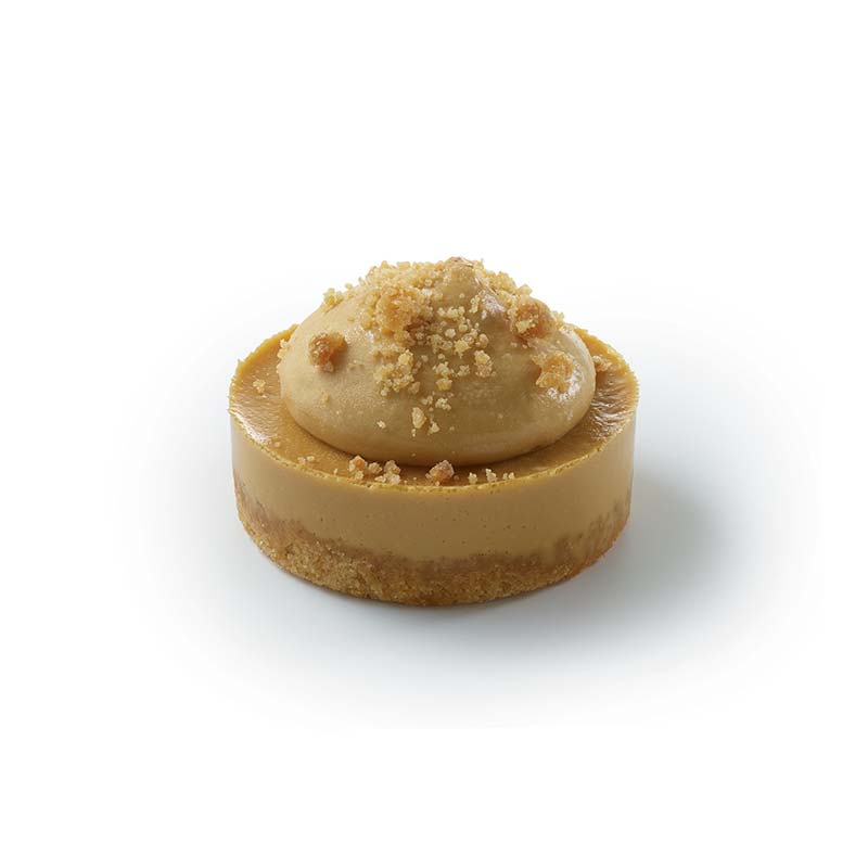 Proposant un agréable mélange de textures, il se compose d’une base crumble, surmontée d’un crémeux caramel et d’une crème légère également parfumée au caramel, le tout ponctué d’un décor crumble.